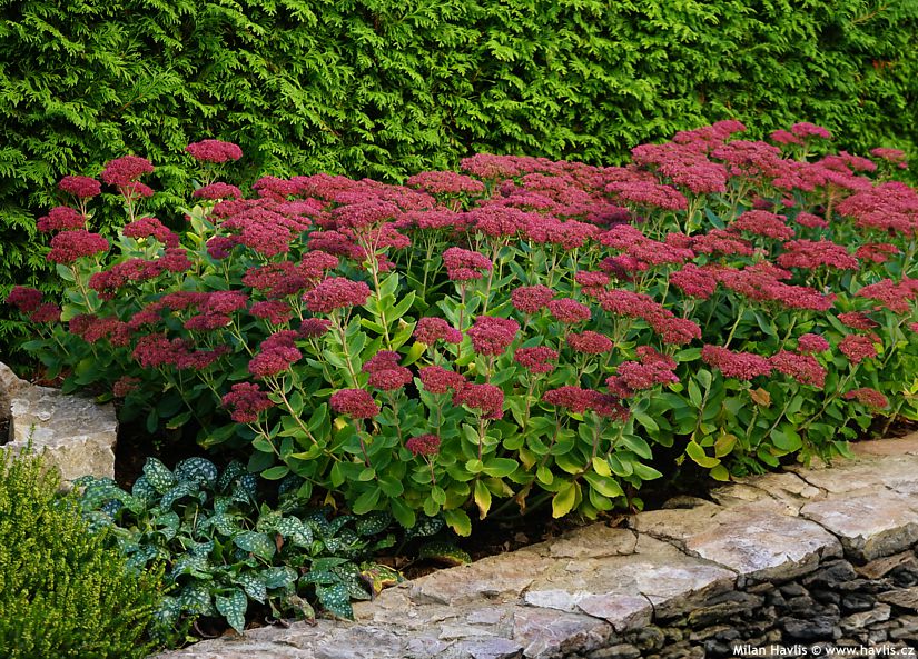 A přitom rozchodník za nic nemůže. Je tak krásný. Existuje jich spousta – jarních, letních i podzimních – a právě ty vám teď chci ukázat. Právě teď je začnete vídat všude kolem – rozchodníkovec nachový (Sedum telephium). Většinou má nachové až růžové květy, výjimečně i žluté a bílé, a statné, dužnaté stonky. Čím dál více se prosazují nižší, ale neplazivé varianty. Základní listy jsou sivě zelené, ale moderní jsou dnes tmavolisté odrůdy v různých tónech – od světle mahagonové přes sytě vínovou až po téměř černou.