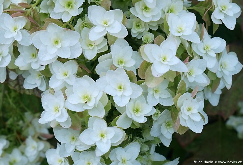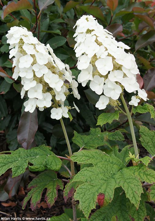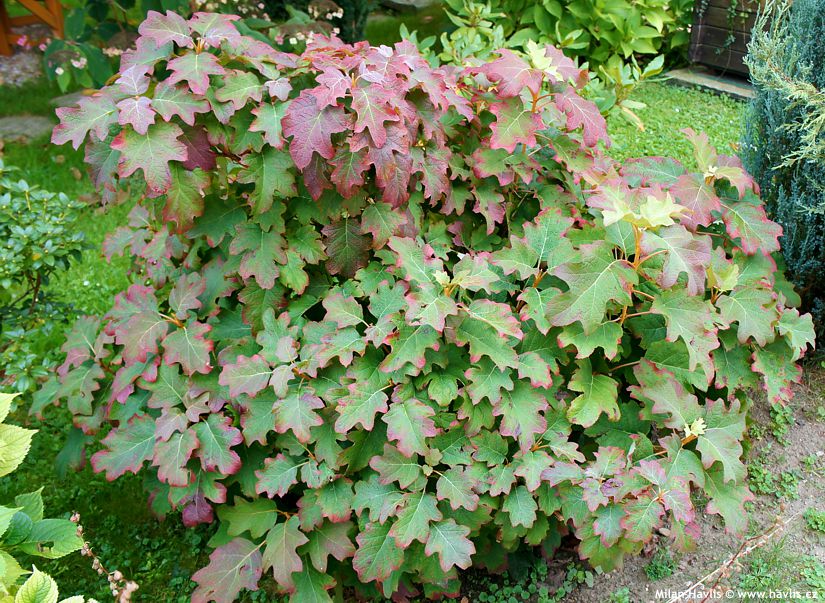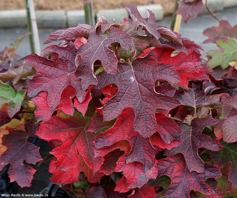 Jenže stále je většina těch, kteří o ní nikdy neslyšeli a to je hrooozná škoda. Tahle krasavice nepatří jen do sbírkových zahrad a milovníkům hortenzií. Je to spolehlivý a zároveň užitečný keř do polostinných a vlhkých až mokrých míst s tak atraktivními listy, že strčí do kapsy i fíkovník. A ta podzimní barva je prostě skvostná.