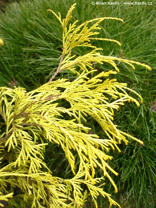 Barvy v zimě ... Chamaecyparis pisifera "Filifera Aurea"