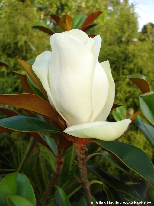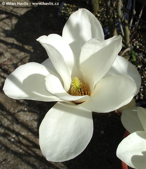 Nádhera převeliká. Jedna z ranných magnólií s velkým, jakoby porcelánovým květem.