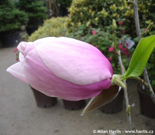 Kříženec hvězdokvětých magnólií ve světlé barvě s růžovými proužky zvenčí. Vykvétá o něco později než stellaty, takže se většinou vyhne mrazíkům.