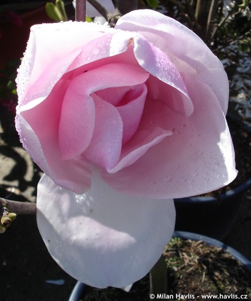 Tak na rozvití tohoto květu si počkejte! Už se sami nemůžeme dočkat. Nejvelkokvětější opadavá magnólie, co znám.