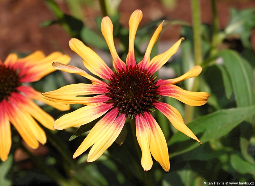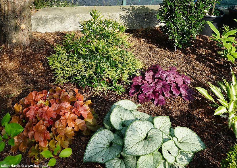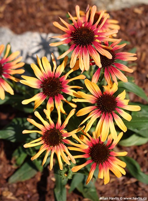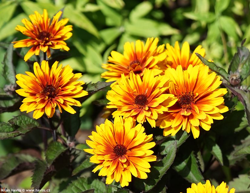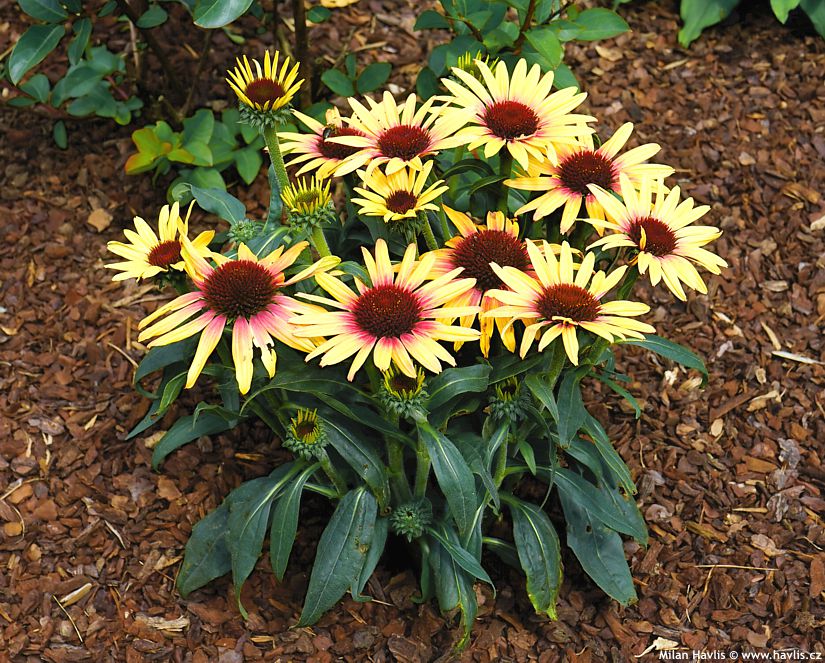 Několik odrůd má panašované – vícebarevné listy ze žlutým či bílým lemováním nebo vnitřkem. Stejně jako barva květů i barva listů je během celé růstové sezóny proměnlivá. Řekl bych, že to není na škodu, ba naopak – zajistí to atraktivní proměnlivost v rámci jednoho záhonu.