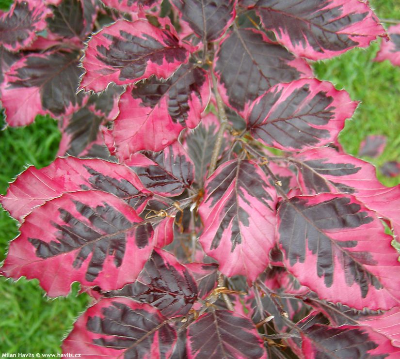 Mezi pestrolistými stromy dnes vyhrává buk Purpurea Tricolor.