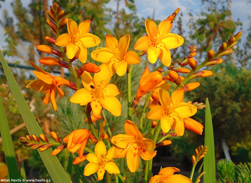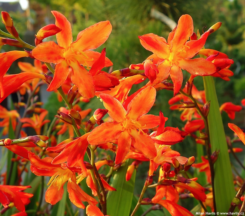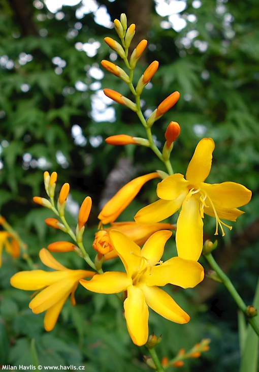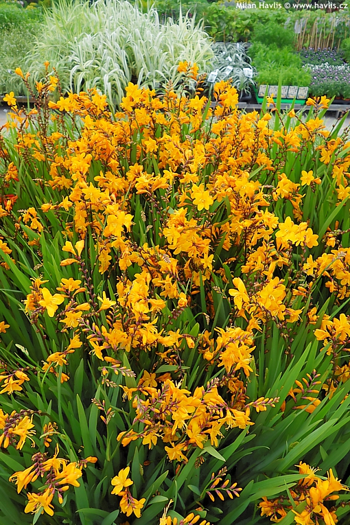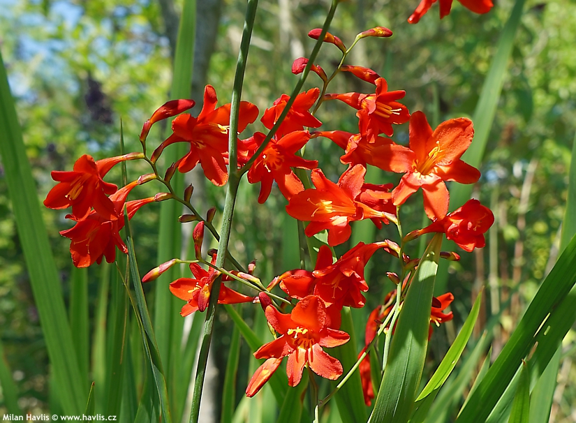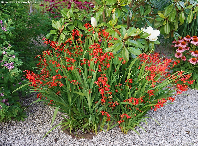 Montbrécie jsou velmi krásné hlízovité trvalky poněkud exotického vzhledu, o kterých se ještě často a naštěstí mylně tvrdí, že jsou pro nás příliš choulostivé. Dokonce je mnoho zahradníků na zimu vyndává jako například mečíky. Není to pravda, nadšeně potvrzujeme, že i přes svůj původ z jihovýchodu Afriky je lze pěstovat bez jakékoli práce a námahy v našich podmínkách a jsou perfektně mrazuvzdorné do minimálně -27 °C. Už existuje neuvěřitelných 300 odrůd, které různě kombinují žlutou, červenou a oranžovou barvu a jejich počet stále narůstá.