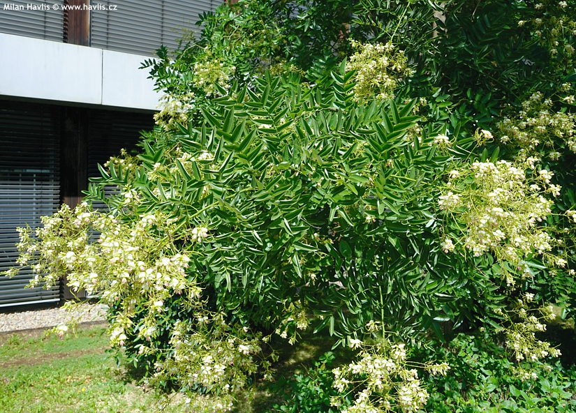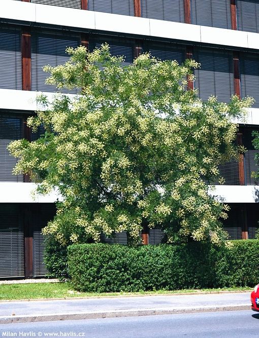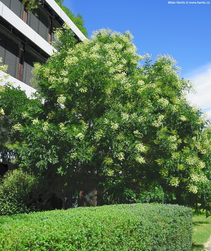 Jerlín japonský je statný a vysoký strom s atraktivní korunou, která díky lichozpeřeným listům podobným akátu vypadá vzdušně a nadýchaně. Přibližně v polovině léta – krátce po svitelech – vykvétá obřími latami složenými z drobných, smetanově bílých až jemně nažloutlých květů, jež skýtají dobrou včelí pastvu. Na místech, kde včely jsou, zní jerlíny v době květu jako tlumené turbíny, protože celý strom doslova hučí, jak je plný pilných okřídlených dělnic. Ta květenství jsou nádherná a stromu dodávají exotický charakter. Ani nevím, čím mě tak přitahuje, ale v době květu jsem schopný u stromu stát a jen na něj civět v němém úžasu. Zkuste to také, ale dejte bacha, ať vás něco nezajede, jerlíny jsou často kolem frekventovaných silnic a ani za mák jim nevadí znečištěné městské ovzduší. No není to kabrňák?