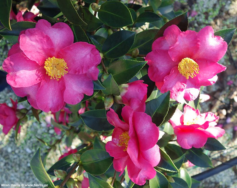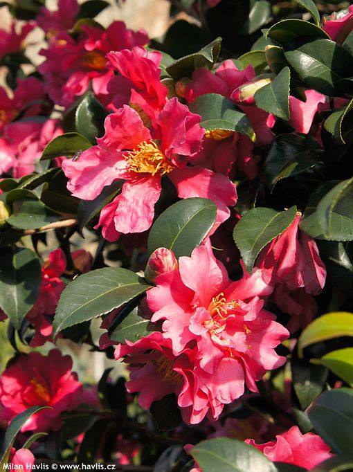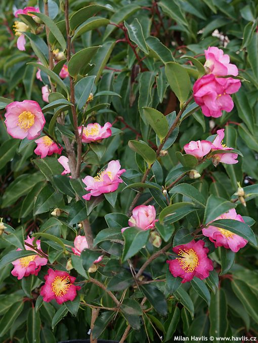 Ale takový souběh nepříjemných vlivů se děje velmi výjimečně. Proto si můžeme užít překrásných květů na nápadně olistěných keřích i v době, kdy většina zahrady se již ukládá ke spánku. Na druhou stranu ve výjimečně teplých letech, kdy je moc pěkné léto i podzim, některé odrůdy mohou začít kvést už v září a podle stáří keře a množství poupat vydržet kvést třeba do Vánoc, je-li hezky a sekundovat tak třeba zimním čemeřicím. Navíc některé podzimní odrůdy a valná většina těch od druhu c. sasanqua jsou voňavé, bezva bonus, ne?