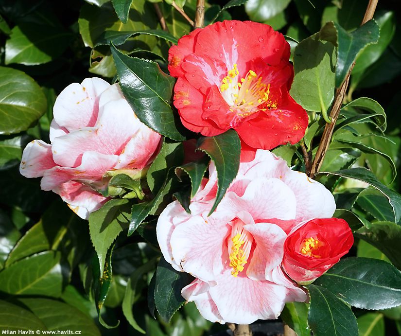 Prohlédněte si naše odrůdy kamélií a vyberte vašeho favorita nebo favority – určitě bude vypadat skvěle kombinace například 3 keřů, kde každý bude mít jinou barvu nebo i jinou dobu kvetení. Tady je galerie těch, které u nás právě kvetou, nebo vykvetou zjara.