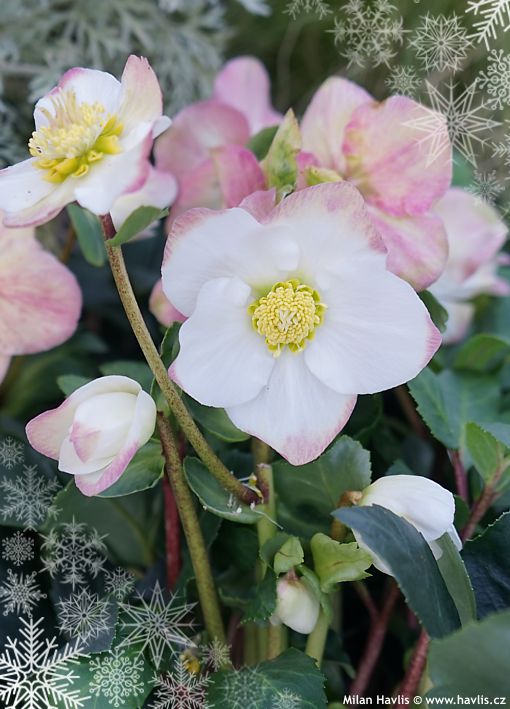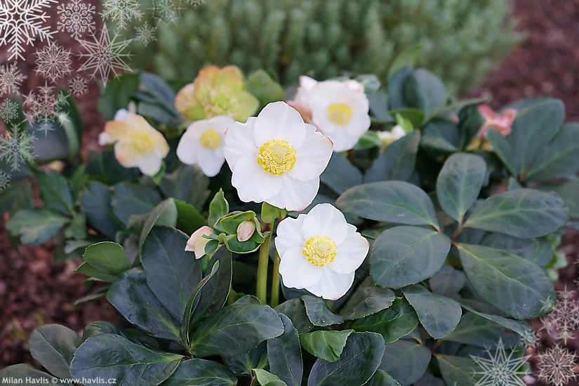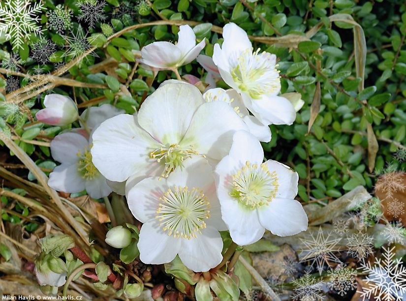Nejběžnějšími druhy čemeřic jsou h. niger (čemeřice černá) vykvétající již na podzim či v zimě a h. orientalis (čemeřice východní), jejíž čas nastává až koncem zimy a začátkem jara. A teď se konečně dostávám k důvodu titulku dnešního příspěvku. Vánoční koleda je totiž jméno této krásné bíle kvetoucí odrůdy – Christmas Carol, která spolehlivě vykvétá před Vánoci a buď ona nebo i jiné bíle kvetoucí odrůdy se často používají ve vánočních květinových výzdobách společně s vánoční hvězdou. Pojďte se podívat i na ostatní odrůdy, které vykvetly už nyní. Nabídku všech čemeřic najdete zde.