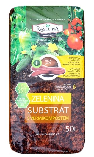 Substrát s vermikompostem Zelenina je speciální substrát s podílem žížalího trusu (vermikompost) a s organickými hnojivy.
