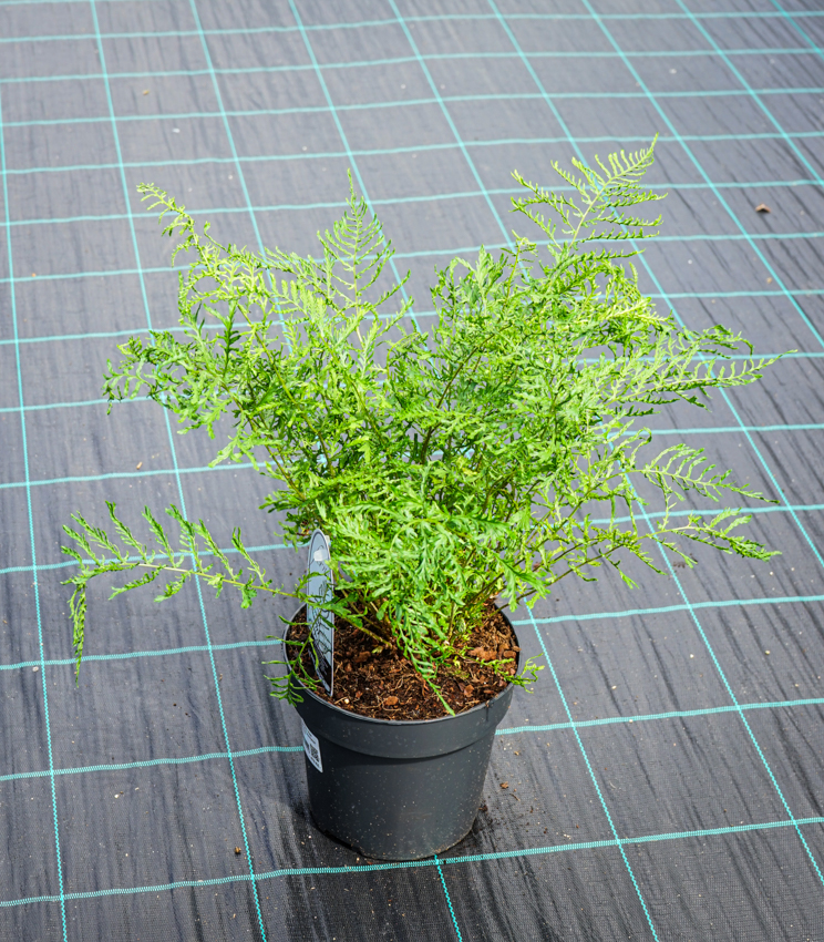 Někdy to vypadá, že čím menší je rostlina, tím delší má latinský název … Tato odrůda kapradě samce patří ke skvostům pro labužníky. Jedná se o „provázkovitou“ kapradinu s velmi tenkými stonky a zúženými listy, které jsou pří koncích mírně roztřepené. Celá rostlina budí velmi nadýchaný efekt. Vřele doporučujeme do skupin se zakrslými jehličnany. Je plně mrazuvzdorná do -30°C. Sázejte do lehké, kyselé a vlhké půdy. Na jaře odřežte všechny loňské listy, čímž podpoříte růst nových a zdravých.