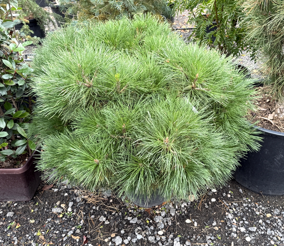 Zakrslá borovice BREPO® nese delší jehlice, které vypadají měkké jako vlasy, ale popravdě jsou podobně pevné jako jehličí samčího rodiče - borovice černé, jen jsou tenčí a mají svěžejší zelenou barvu. Rostlina vytváří spíše plošší a velmi husté koruny i bez stříhání a skvěle se hodí k použití ve formě stromku nebo stromu, jehož koruna bude hustá ale nikdy příliš velká.