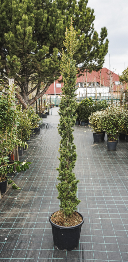 The shape of this plant is almost crying out for using in locations similar to where the famous Italian cypress would be grown. Cypress’ thin and tall statue is a symbol of Tuscany but is no way hardy in central Europe. This cedar is a perfect and hardy substitute that will look terrific combined with shrubs of entirely different shapes such as mound-forming azaleas or cushions of lavenders, and ball-shaped box or similar other plants.