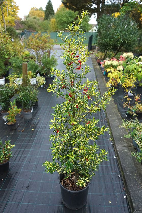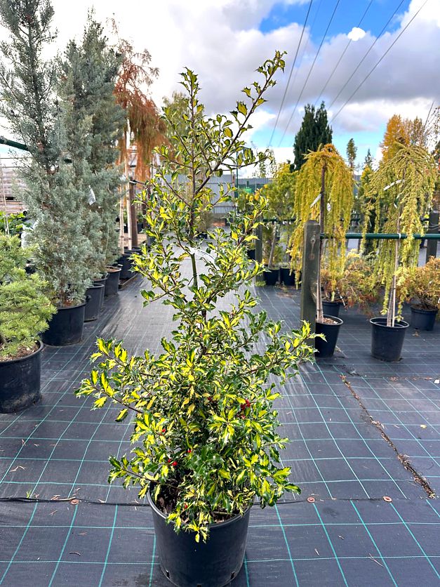 Variegated hollies are versatile in use. They can stand alone as attractive medium-sized specimen shrubs, or they can be a part of a large mixed border or landscape combined with other evergreen plans such as conifers, rhododendrons or cherry laurels. Once established it grows medium fast or fast and can easily be pruned so you can soon model a desired shape. Pruning in April will encourage new growths, trimming by end July is ideal for shaping.
