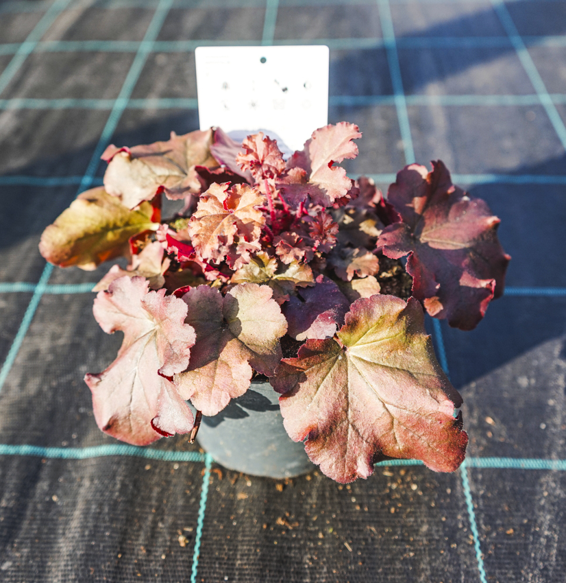 Coral bells can take almost any soil with ample moisture and good drainage. They do best in partial shade or filtered sun, however, if you make sure they will not dry out you can place them in full sun, too. They can also live in dark shade where their colours will not be too rich, such location is usually best for light coloured varieties. Cut off all leaves in early spring to encourage growth of new foliage. Fully hardy to abt. -34°C (USDA zone 4), and suitable for outdoor pots.