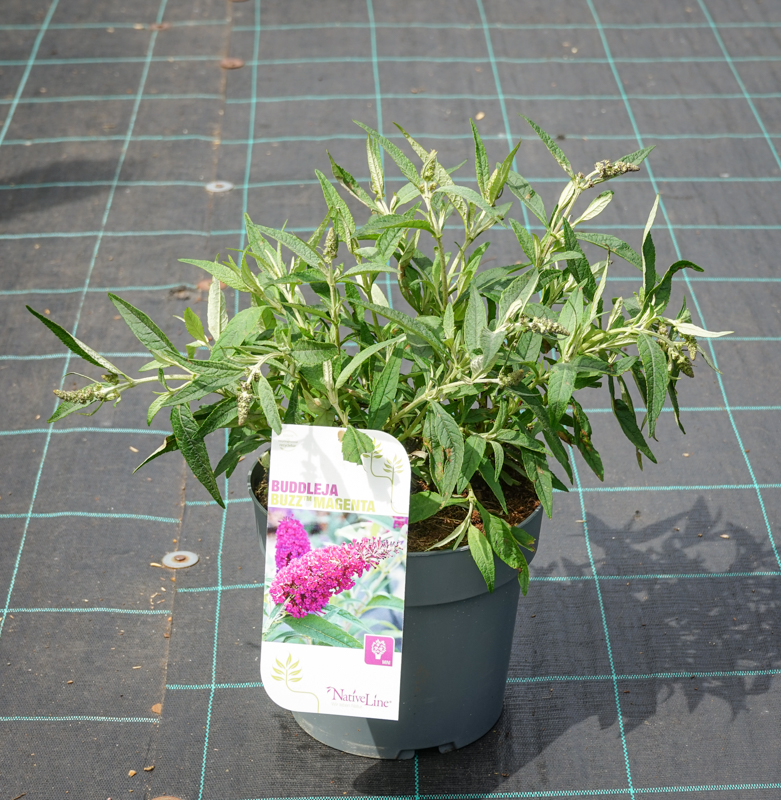 BUZZ™ MAGENTA je další kompaktní komule ze série BUZZ™, u které bych měl snad jedinou výtku, a to vůči názvu: magenta znamená fuchsiová, tj. sytě purpurově růžová, ale tato odrůda je sytě fialová a fuchsiový má jen nádech. Drobné, trubkovité květy mají oranžové hrdlo a jsou složené do bohatých květenství o délce 20-25 cm, vykvétají od konce června až do září a slastně voní. Mohou připomínat i šeřík, proto se keři někdy také přezdívá letní šeřík, i když toto jméno je zavádějící, neboť se používá pro lagerstrémii.