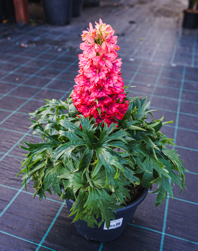 Rostlina dosahuje maximální výšky 60 cm a má kompaktní, vzpřímený habitus. Tento nižší vzrůst je ideální pro menší zahrady nebo jako přední až střední linie v trvalkových záhonech. Stonky jsou pevné a odolné, což zajišťuje stabilitu i při větrném počasí a zároveň eliminuje potřebu opory. Díky nim je skvělá i jako řezaná květina, kde její jedinečná barva vynikne. Intenzivní barva, kompaktní vzrůst a relativně snadná péče činí z ostrožky Red Lark perfektní volbu do moderních zahrad. Její výrazné květy lze skvěle kombinovat buď se stejně pastelovými barvami jiných trvalek, nebo naopak pro kontrast zvolit neutrálnější tóny okolních rostlin, což vytvoří harmonické a přitom dynamické kompozice.
