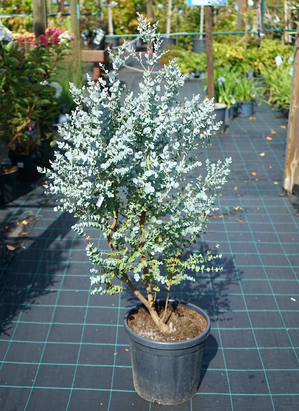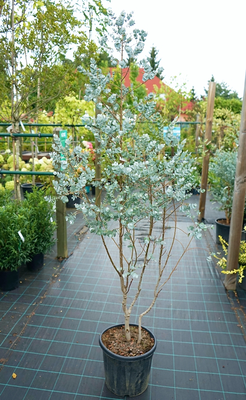 Naše zahradnictví se specializuje na stálezelené listnáče a postupem let vyhledáváme a testujeme stále další a další druhy a odrůdy, kterými lze obohatit naše zahrady. Je vždycky obrovská radost vidět, jak se některým novým dřevinám u nás daří i přes údajnou nevlídnost našeho klimatu. Jedním z čekatelů na zázrak byl i blahovičník – eukalyptus. Mnoho bylo napsáno o jeho aromatické silici, která se používá na dýchací cesty, o jeho dřevě, jehož výjimečná odolnost se využívá na výrobu všeho, co má dlouho vydržet, a to vše už po mnoho století a dost možná i déle, protože byla nalezena 50 miliónů let stará fosílie eukalyptu potvrzující, že se jedná o jeden z nejstarších endemitů naší planety. A nemluvě o kresbě dřeva, která bývá doplňkem interiérů luxusních aut a mnoha dalších zbytečností. Nás ale zajímá jeho estetická hodnota jako keře či stromu.