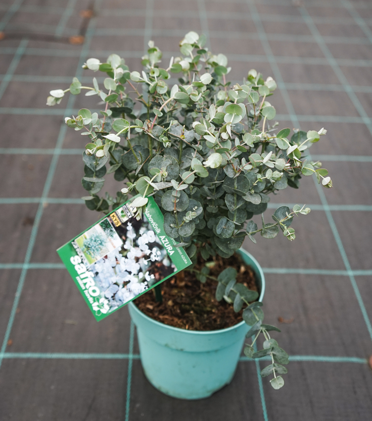 Milovníkům eukalyptů jistě neušlo těch pár opravdu odolných druhů, které jsou dobře mrazuvzdorné, ale ke smůle všech ostatních – v běžném prodeji nedostupné nebo jinak problematické. K těm odolnějším patří australský (tasmánský) druh eucalyptus gunnii, který se už dlouho pěstuje ve většině teplejších lokalit Západní Evropy, kde zimní teplota neklesá pod -15°C nebo výjimečně -17°C. Jenže to je pro nás málo. Roku 2006 se ale stal zázrak, který na začátku vypadal zlověstně - v jedné francouzské školce zmrzly všechny semenáče této rostliny, o níž se všichni domnívali, jak je odolná, až na jeden kus. Jeden jediný eukalyptus přežil nezvykle tuhou zimu, která ten rok potrápila celou Evropu, projevil velkou ochotu se množit a dal nám tak možnost zažít i na našich zahradách tu neopakovatelnou nádheru ocelově modrých listů po celý rok, protože doposud odolal teplotě -20°bez jediné známky poškození, věří se, že vydrží i o něco více. Dostal jméno AZURA a je chráněn evropským patentem č. EU 25846 z roku 2008.