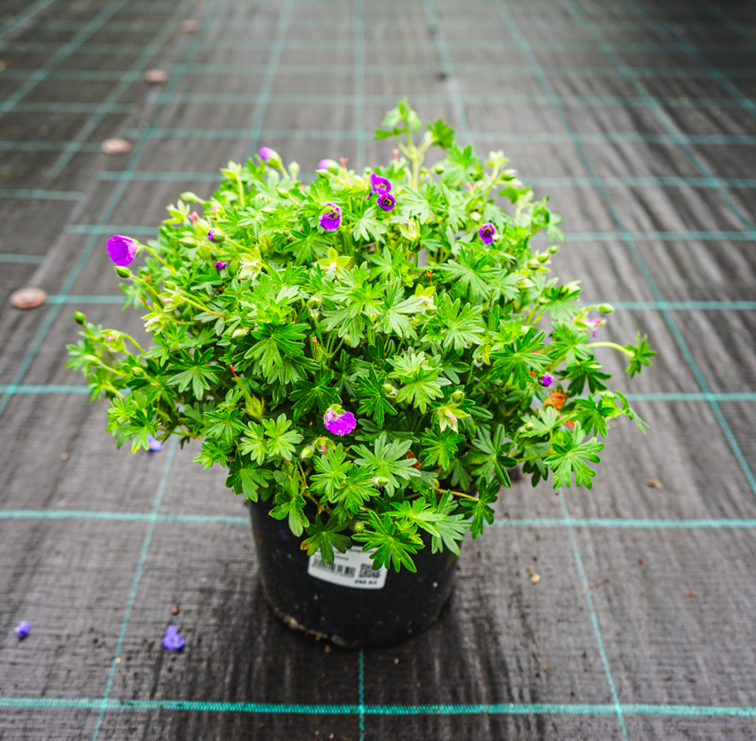 Nese sytě lila růžové květy v největší síle od konce května do začátku července a po krátké pauze nakvétá sporadicky až do podzimu. Výrazně dělené listy jsou velmi atraktivní, tmavě zelené a částečně lesklé. Jejich prostředkem vede výrazná rýha. Na podzim nabírají několik odstínů sytě červené a vínové. Trs roste spíše při zemi do plochých pater (etážovitě). Po hlavní vlně kvetení můžete celý trs radikálně ostříhat pro podporu rašení nových, pěkných listů a květů koncem léta.