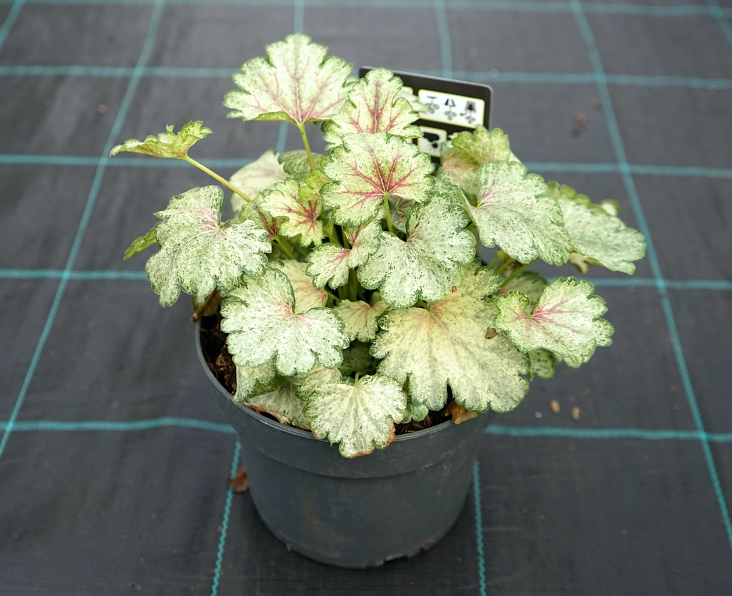 U dlužich jsme si v posledních desetiletích zvykli spíše na barevné výbuchy a dramatické kontrasty, za které by i Shakespeare byl vděčný, ale Snowy Panky pracuje s jiným typem působivosti. Její síla neleží v temnotě ani v sytosti, ale v chladné, světelné kresbě listu. Základ tvoří velmi světlý, stříbřitě bělavý podklad, do něhož se nepravidelně vpíjí jemná mramorace v odstínech svěže zelené, soustředěná především do purpurově růžové, ostře kreslené žilnatiny. Povrch listu působí čistě, téměř křehce, jako by byl poprášený jemným sněhem, přesto si zachovává pevnost a strukturu. Kresba není jednotná ani stabilní – mění se s teplotou, intenzitou světla i stářím listu, takže rostlina nikdy nepůsobí ploše ani staticky. Snowy Panky tvoří kompaktní trs nízkého až středního vzrůstu s pravidelným, vyrovnaným habitem. Listy jsou středně velké, pevné, mělce laločnaté, uspořádané v klidné, přehledné růžici. Nejsou stálezelené a před zimou zatahují.
