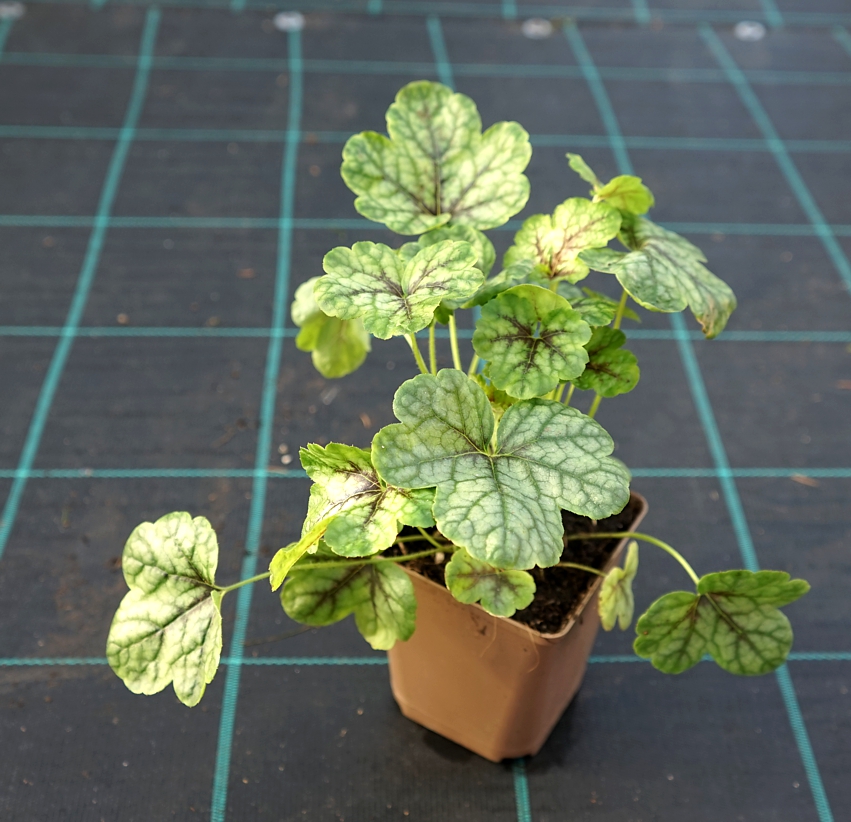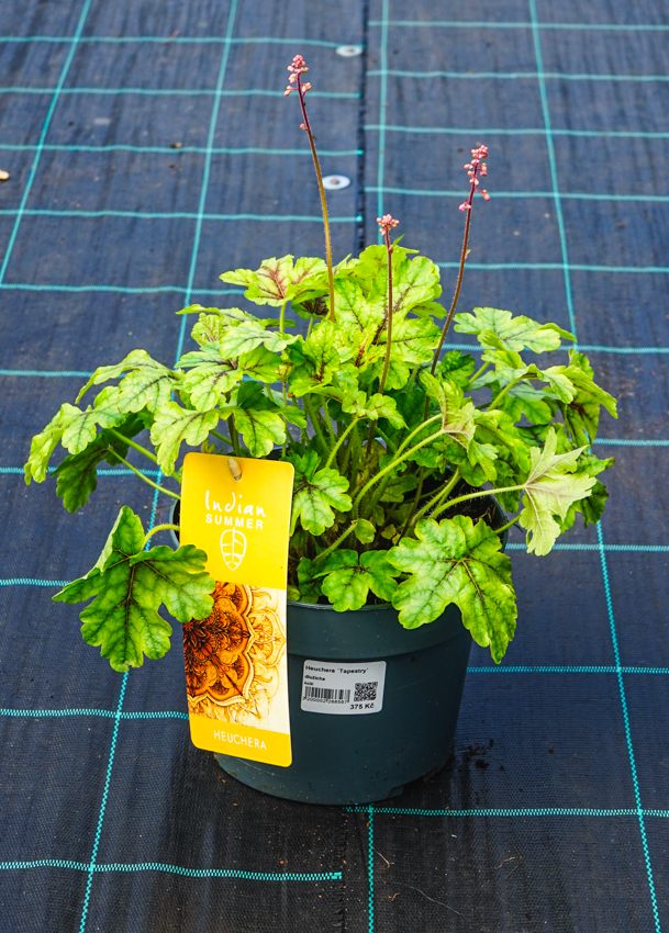 Tapestry® je mezidruhový kříženec dlužichy z mé oblíbené šlechtitelské stanice Terra Nova Nurseries v USA. Její výrazně tvarované, dlanité listy jsou bohatě vykrajované a mají nápadně zakulacené hlavní cípy. Mísí se v nich více barev - středy jsou sytě vínově hnědé až téměř čokoládově hnědé a okraje zelené, zjara s nádechem do modrozelena. Průběžně od května až do září tvoří asi 30-40 cm vysoké, tenké stonky s moc pěknými, růžovými kvítky ve tvaru drobných zvonečků. Roste rychle a brzy vytvoří hustý polštář pestrých listů.