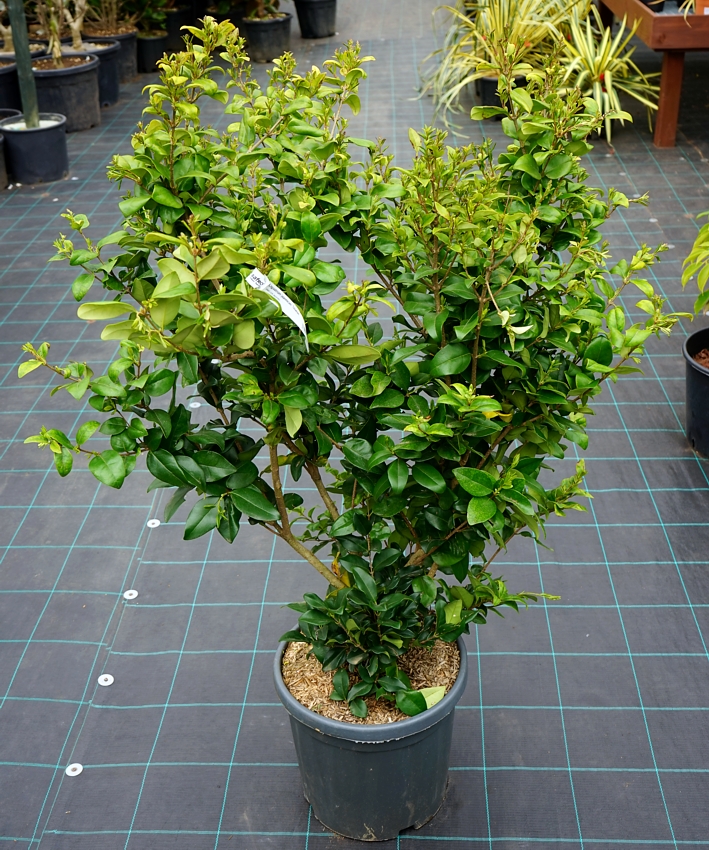 Roste pomalu až středně rychle (20-30 cm za rok) do elegantně neučesaného tvaru s bohatě olistěnými větvemi rozevřenými jako vějíře. Pokud se vám přirozený habitus nebude líbit, můžete jej jakkoli stříhat, nejlépe zjara po mrazech nebo po odkvětu. Můžete jej použít jako neobvyklou stálezelenou solitéru do menší zahrady, do skupiny jinak tvarovaných či vybarvených keřů a přirozeně i do živého plotu.