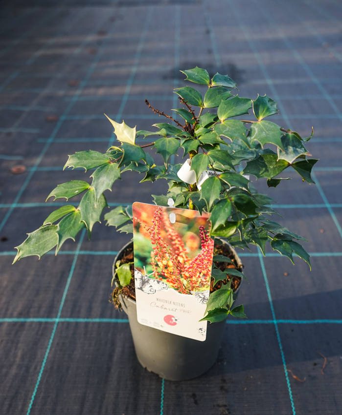 Cabaret® je úchvatný, nízký keř, jehož hlavní atrakcí jsou květy od září až do prvních silných mrazů listopadu. Jsou uspořádané ve středně dlouhých (10-15 cm) vzpřímených hroznech, poupata jsou sytě korálově šarlatová až červená a otevírají se do oranžově žlutých květů. Na rozdíl od jiných mahonií tato nevoní. Po nich následují drobné, modravé plody. Její neopadavé lichozpeřené listy jsou uspořádané podobně jako u mahonie Bealeovy (japonská mahónie), mají středně zelenou barvu a zdobí je po okrajích jemně načervenalý, tenký lem. Jsou lesklé, kožovitě tuhé a po úplném dozrání na konci jara i pichlavé ve špičkách.