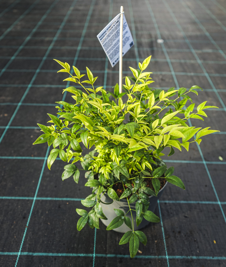 Nandina MAGICAL LEMON & LIME pochází z amerického městečka Locustville, což bychom mohli přeložit jako Akátov. A v tomhle "Akátově" se zrodila nová nandina - nebeský bambus - jako náhodný semenáč starší odrůdy Aurea. K jejím přednostem patří výrazná barva v odstínech zářivě limetkově žlutozelené až světle žluté a kompaktní růst. Téměř nekvete a zachovává si extrémně hustý až naměstnaný růst. Listy jsou v mírných zimách jsou neopadavé, lichozpeřené, jednotlivé lístky jsou kopinaté.