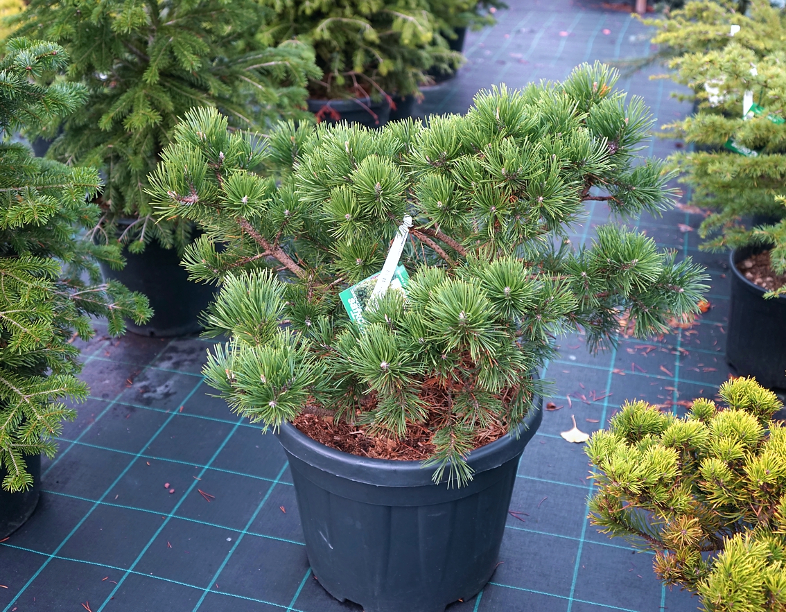 Gnom (z angličtiny „trpaslík“) je zakrslá, pomalu a hustě rostoucí forma borovice kleče polokulovitého tvaru, kdy 10letá rostlina vytvoří kopuli o výšce kolem 60 cm a až dvojnásobné šířce. S věkem se rozrůstání do stran zpomalí a keř se zdvihá i do výšky, takže konečná výška se může rovnat jeho šířce. Encyklopedický údaj o velikosti v dospělosti hovoří o 3m ve věku 25 let, ale takto velký Gnom jsme ještě neviděli. Jehlice jsou středně dlouhé, tmavě zelené, neopadavé.