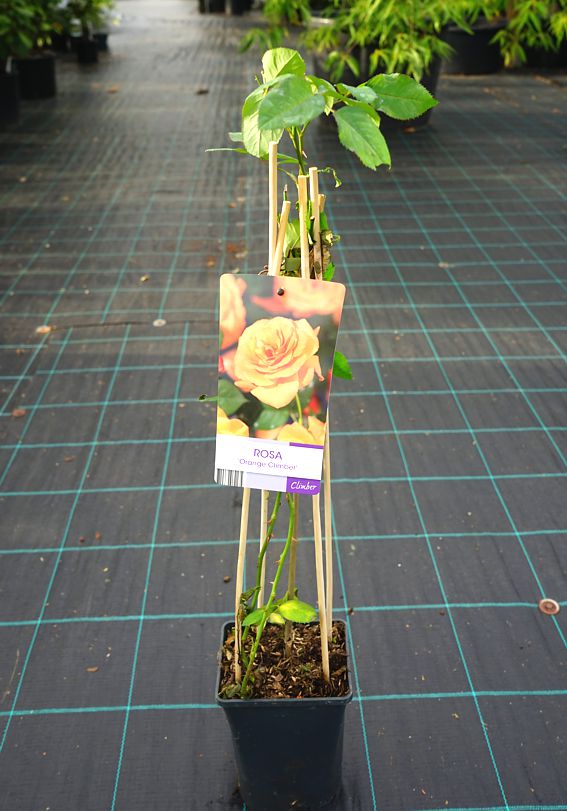 Orange Climber je atraktivní popínavá růže z Holandska od šlechtitelů Verschuren z roku 1990. Nese středně velké, poloplné květy o průměru kolem 8 cm. Vykvétají sytě mandarinkově oranžové a během zrání nabírají výrazně lososový odstín. Okraje okvětních plátků jsou rozpustile zvlněné. Kvete v několika vlnách od června až do podzimu a dorůstá kolem 2,5m.