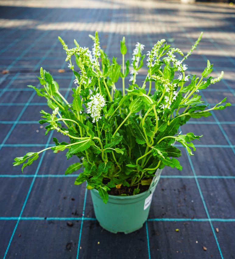 Schneehügel znamená ‚Hromádka sněhu‘ a tato šalvěj je přesně tím, co název napovídá. Malá a kompaktní odrůda šalvěje hajní, jejíž stonky většinou nepřerostou 40 cm výšku a jedna rostlina má přibližně stejnou šířku. Jako když vám po jarním tání zbude na záhoně čistě bílá hromádka sněhu, která čeká na více sluníčka. Drobné, bílé květy jsou uspořádané podél vzpřímených stonků a vykvétají od května do července. Listy jsou kopinaté, hrubé, středně zelené a aromatické. Nejsou jedlé. Schneehügel tvoří husté trsy a nevyžaduje žádnou péči. Pokud ji chcete mít co nejhezčí, po hlavním kvetení ji můžete ostříhat až k zemi, aby znovu narašila do nového trsu s pěknými, zdravými listy a novými květy.