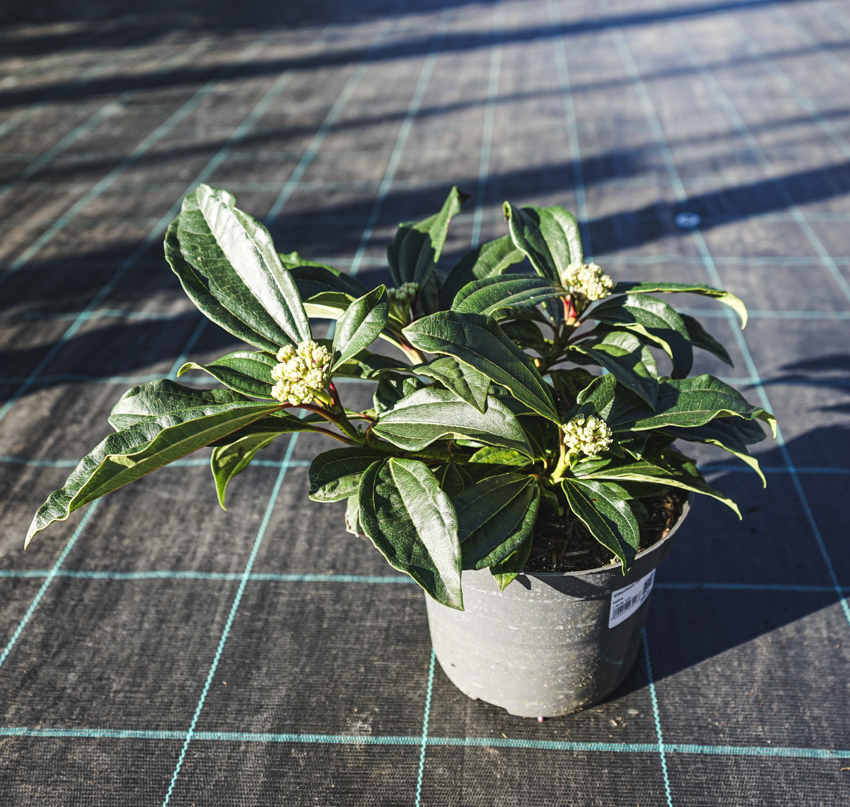 Tato stálezelená kalina Davidova může být opravdovým skvostem ve vaší sbírce. Nese smaragdově zelené, oválné listy s výraznou texturou 3 hlavních žil, které dodávají na plasticitě tohoto keře. Bonusem navíc jsou sytě červené až vínové řapíky listů, mladé větvičky a květní poupata. Ta se otevírají v našem klimatu brzy zjara a v teplých oblastech ještě na podzim v bílé laty drobných květů, ale v závodu o krásu nemají šanci dostihnout listy. Pokud jsou květy opyleny, vyrostou z nich modré, nejedlé plody.