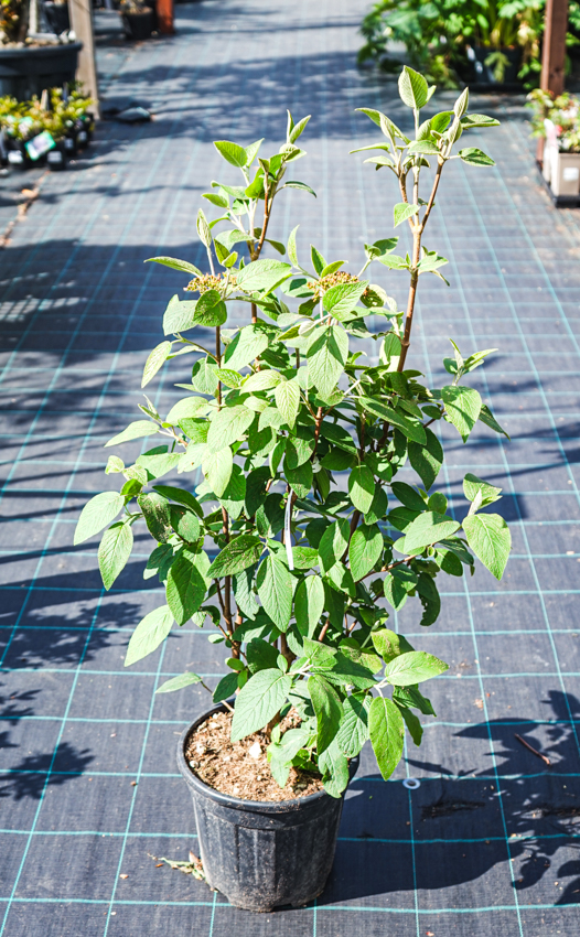 Vyznačuje se nápadně tuhými, široce oválnými, jemně plstnatými listy o délce 6-12 cm. Jsou opadavé, středně zelené a na podzim se zpravidla barví do šarlatově červené či lehce vínové. Od května do června bohatě kvete až 10 cm širokými okolíky složenými z bílých, silně voňavých květů, po kterých koncem léta následují velmi atraktivní, lesklé plody červené barvy po dobu asi jednoho měsíce, než se zbarví do černa. Nejsou jedovaté a poskytují bohatou potravu pro ptactvo stejně jako květy pro včely a jiný hmyz.