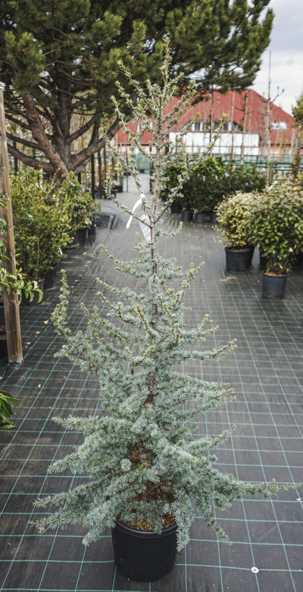 Glauca is a very popular blue‑tinged form of the Atlas cedar. It is not a single cultivar with completely uniform characteristics, but botanically a form – a group of individuals selected from the species, which, thanks to its chameleon‑like variability in needle colour, can display a whole range of blue shades. Needles of these trees show the most pronounced silvery‑blue colouring, while in terms of structure, it remains almost identical to the species. When young, it forms a regular, narrowly conical crown with a strong central leader; with age, the crown gradually loosens, flattens, and becomes broader, often developing a picturesque, irregular outline. In gardens it usually reaches a height of about 10 to 20 metres, and up to 30 metres in parks where there is unrestricted space for root development. It forms a spreading crown roughly 10 to 15 metres wide, whose full extent only becomes apparent over time. Lateral branches are set at a noticeably steeper angle than in the Lebanon cedar (almost horizontally tiered), giving the crown a more compact appearance. This lends the tree a lighter, more dynamic character.
