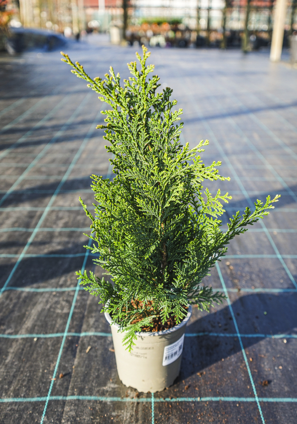 Columnaris is a hugely popular variety of Lawson cypress with blue needles and compact habit. It does not grow wider than 1m which makes it ideal for hedges that are only trimmed at the top. Mature plants can reach 6-8m in many decades, they are usually kept smaller by regular trimming that is best done in April. Medium growth rate. It prefers moist, slightly acidic soil but is adaptable to almost all types of soil. Fully hardy to -28°C (USDA zone 5).