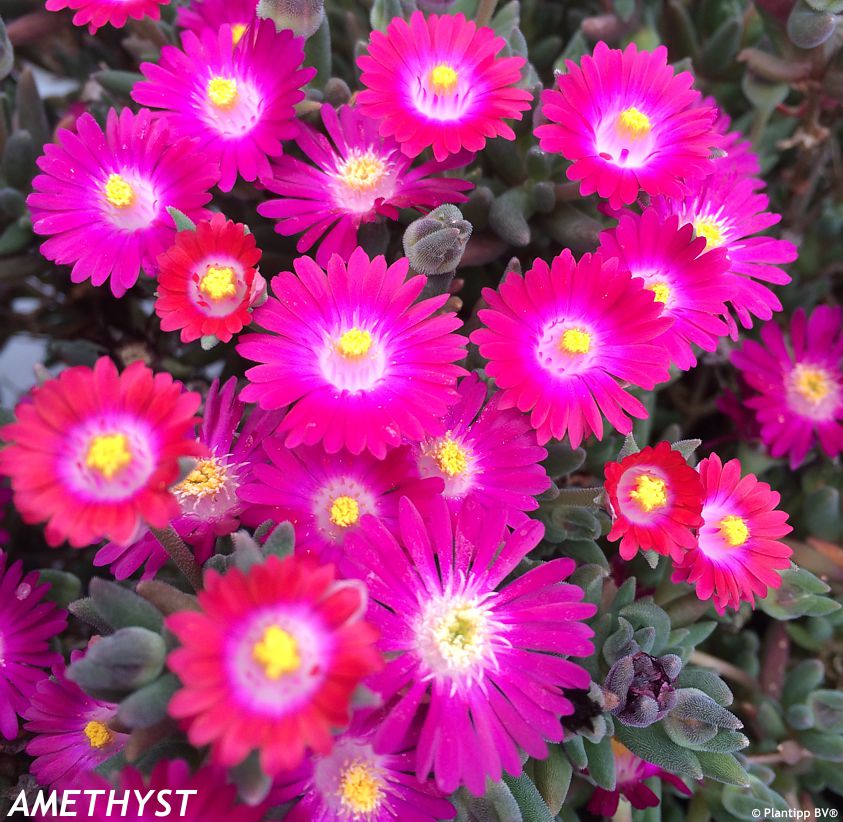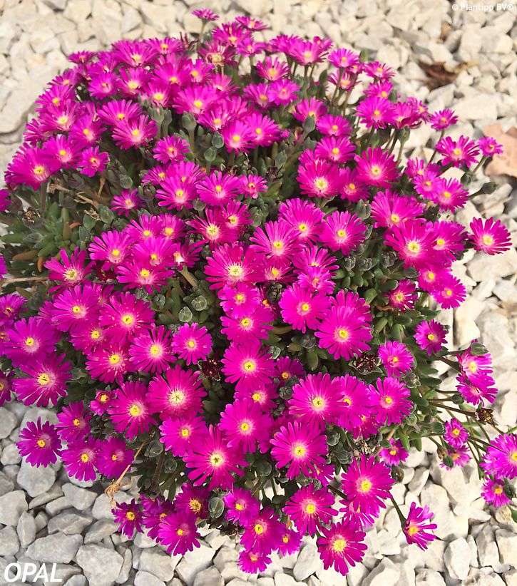 Ice plants from the Jewel of Desert series are typical plants of dry, stony sites with plenty of sun and fast‑draining soil. They require full sun and a very well‑drained substrate with a high mineral content. Heavy, clay‑rich, or persistently wet soils are unsuitable and must be significantly improved with gravel or sand. Once established, the plants are highly drought‑tolerant and require only minimal watering, while excess moisture – especially in winter – is the most common cause of failure. Fertilisation is unnecessary, and excessive nutrients may lead to lush but less resilient growth. In dry winter conditions, the plants tolerate temperatures down to approximately −20 °C (USDA zone 6); the key factor for successful overwintering is not frost itself but protection from winter moisture. Pruning is generally not required, apart from the light removal of damaged parts in spring.