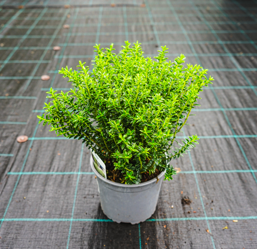 New Zealand hebe (veronica) is a non-flowering hebe hebe odora hybrid, hardier than its parent. It has small, rich emerald green, evergreen leaves on erect branches. The plant forms a neat cushion of a sharp, dome-shaped outline, and can be lightly clipped or shaped in early spring after all frosts. It grows faster than other species and may be used for informal, low hedges, or in mixed borders or large rockeries.