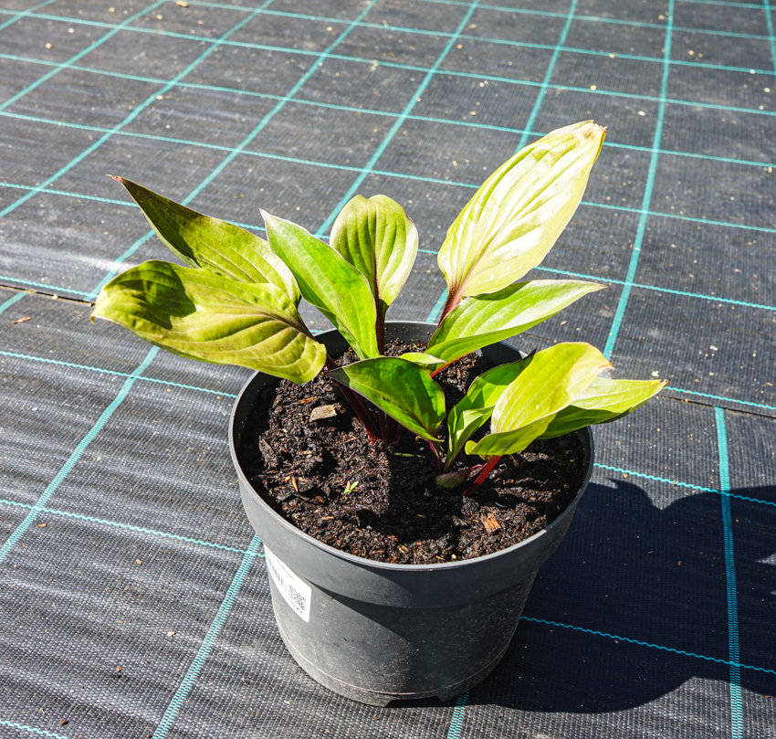 First Blush is a distinctive hosta cultivar that offers something rare among the genus: a red tint. It is subtle rather than bold – hence its name – yet at the moment of leaf emergence it is striking and lends a shaded garden an entirely different vibe. The reddish to pink colouring appears mainly in spring and is concentrated in the young leaves, where it creates a delicate, changeable effect influenced by weather conditions and light levels. At first, it spreads across the entire leaf surface, later retreating towards the margins, as if raspberry syrup had been poured over the leaves and were slowly running off, altering their appearance day by day. The leaves are narrowly heart-shaped, 20-22 cm long, smooth, with softer tissue and gently undulating edges, giving the clump a light, open habit rather than a compact one. In summer they are largely green, marked only by red veins, and glossy. From July onwards, pale lavender flowers appear on slender scapes reaching 60–70 cm in height; they do not overpower the foliage effect, as they rise well above the leaf canopy.