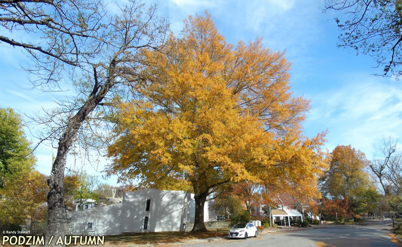 The tree develops a straight trunk and a regular, broadly conical crown in young age with a light, airy structure, formed by slender branches that are initially ascending and later spread more horizontally; in younger specimens the branching can recall that of Lebanon cedars. With maturity, the crown becomes more rounded, forming a regular canopy of broadly oval to rounded shape. The bark of young trees is smooth and grey‑brown, darkening with age and developing shallow longitudinal fissures, without the deep, coarse ridges typical of many other North American oaks. The current‑season shoots are slender, olive‑brown to grey, with small, ovoid, inconspicuous buds. From late summer onwards, small acorns ripen and often persist on the branches after leaf fall, extending the availability of food for birds and mammals.