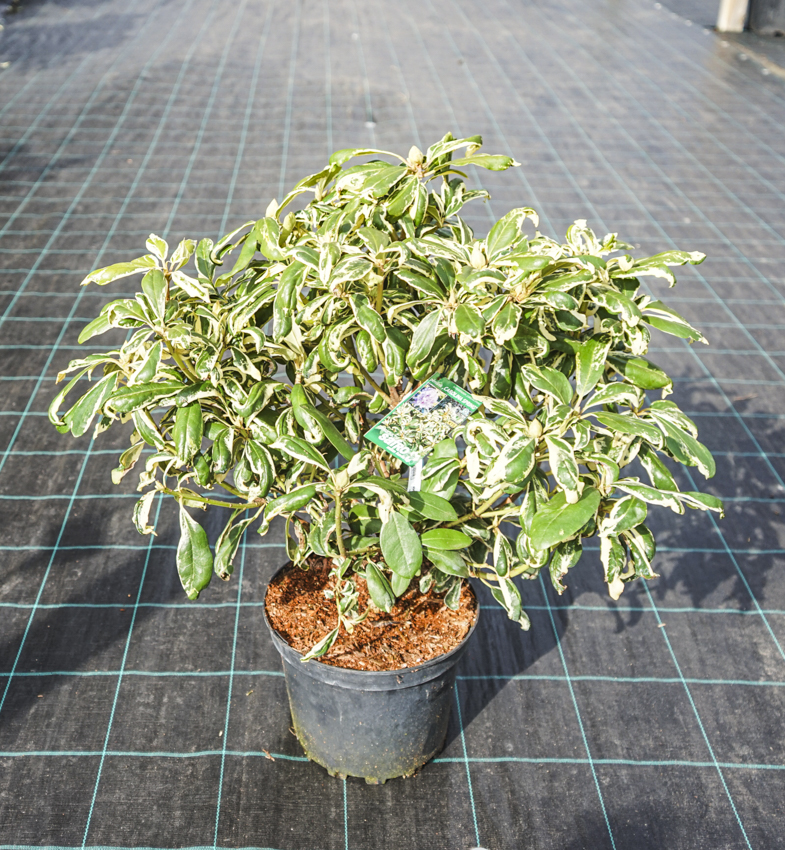 Carolina Spring is an awesome rhododendron variety from the USA. It has deep green, glossy leaves with rich cream to light yellow variegation which may take up 30-50% of adult leaves and even more on young ones. Moreover, the leaf margins are curved down. They cover the plant completely making a healthy and rich appearance.