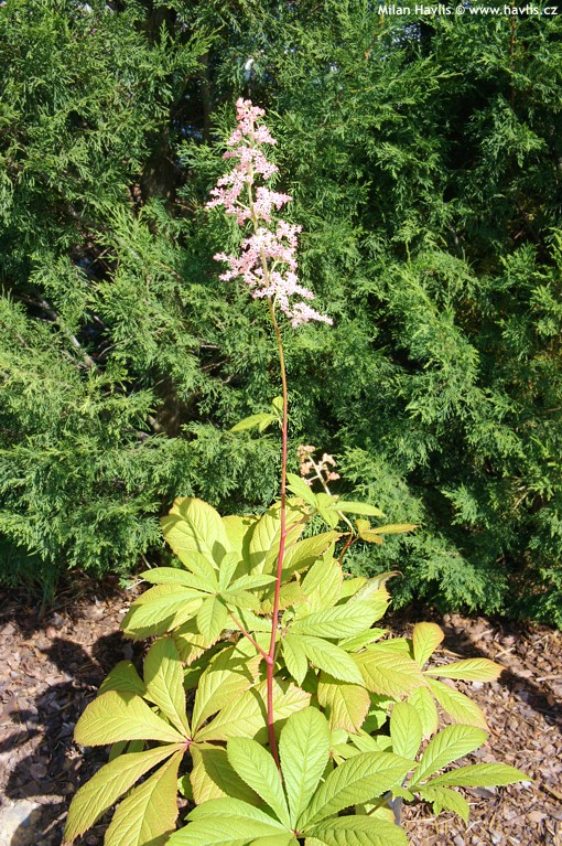 In late spring when the weather turns summer-warm or even hot appear 50-90 cm tall stems with plume-like spikes of tiny, fragrant flowers. When the plants come from seeds the flower colour varies from creamy beige to light pink. The colours are stable only when propagated by dividing.