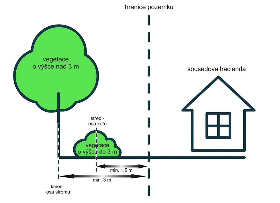 Podle Občanského zákoníku musíte dodržet tyto vzdálenosti: