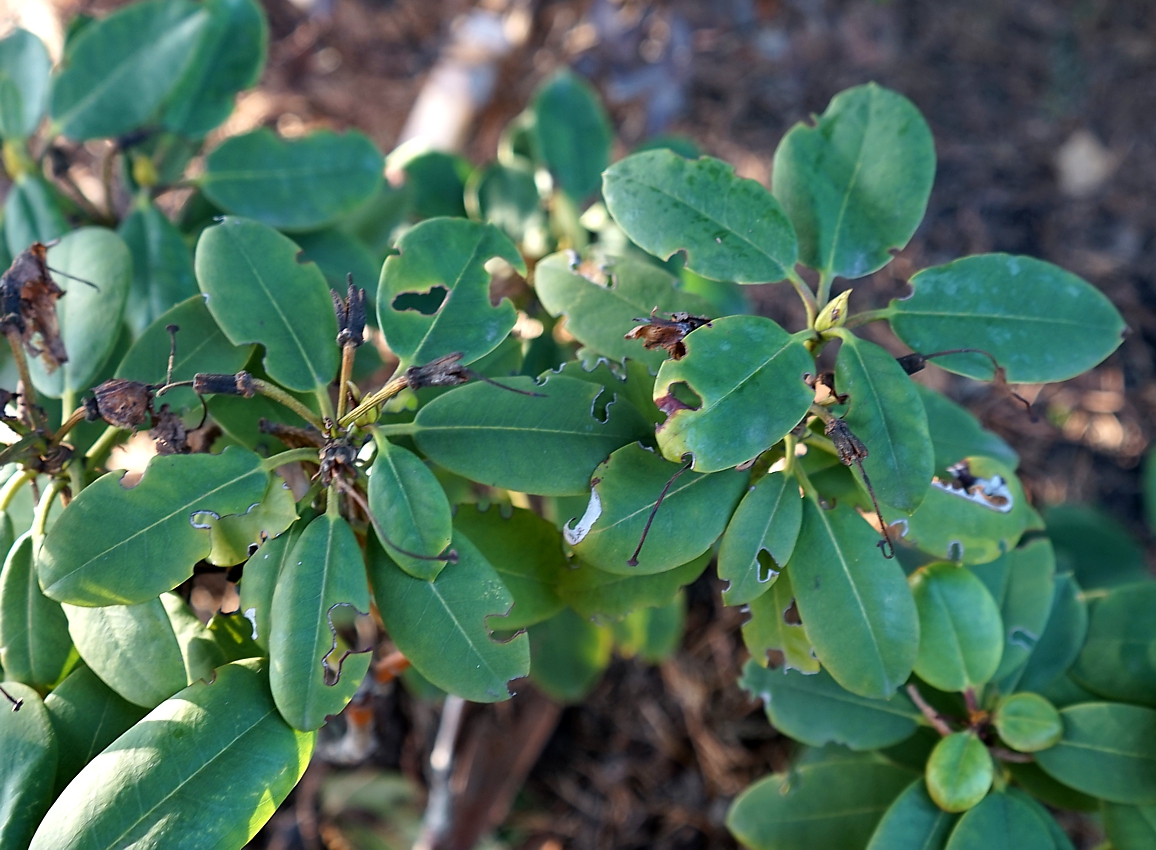 Dospělci mají rádi stálezelené keře s tuhými listy – rododendrony, bobkovišně, cesmíny, brsleny apod., ale při přemnožení se pustí i do opadavých keřů s pevnějšími listy, jako jsou svídy, šeříky, velkolisté hortenzie a další. Naopak nechutnají mu listnáče s výraznými vonnými silicemi nebo hořkými látkami jako choísie a ptačí zoby.