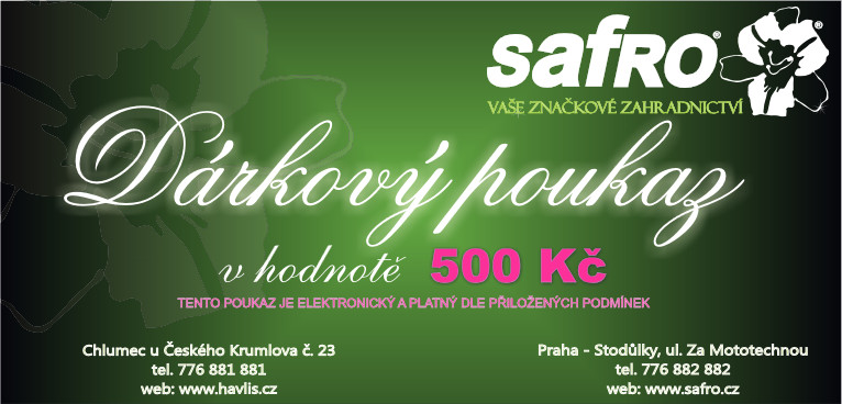 DÁRKOVÉ POUKAZY - Pokud chcete obdarovat své přátele něčím, co je potěší a zároveň umožní svobodný výběr rostlin dle vlastního vkusu a potřeb. Prostřednictvím tohoto formuláře si u nás můžete on-line objednat dárkové poukazy standardně v hodnotách 500, 1000, 2000, 5000 Kč. SLOUŽÍ PŘEDNOSTNĚ JAKO DÁREK A NELZE NA NĚ UPLATNIT SLEVU. Můžeme vám je poslat fyzicky nebo vystavit elektronicky. Při odeslání v obálce ale počítejte s vyšším poštovným kolem 150 Kč (cenina).