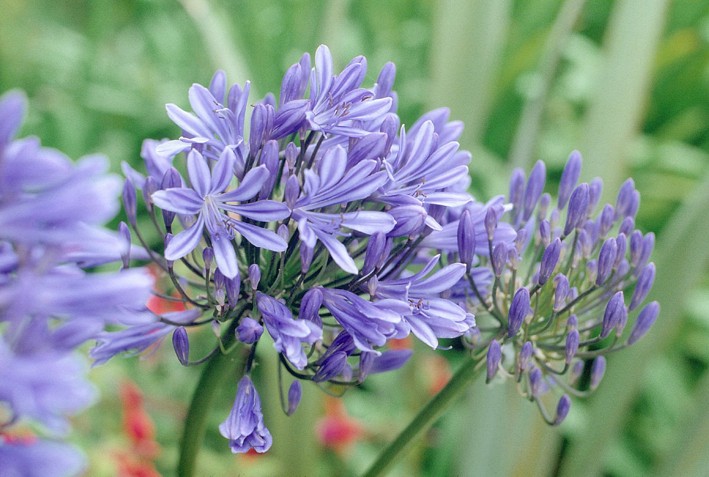 Bluestorm® nese květy na cca 70 cm dlouhých, pevných stoncích, které odolávají větru i dešti. Na jejich koncích vykvétají přibližně 10 cm široké hlavy plné úzce zvoncovitých květů modrofialové barvy. Jejich množství je tak velké, že vydrží nabízet záplavu modři neuvěřitelné 2 měsíce. V našich podmínkách vykvétají v polovině července, čímž se zařadí mezi spolehlivé, kvetoucí rostliny léta a naše letně laděné zahrady výborně oživí. Hodí se jako doplněk k bazénům, jako luxusní okraj kamenných chodníčků nebo nápadná nižší dominanta mezi vyššími keři či stromy. Listy jsou ploché, pouze 2 cm široké a dorůstají do 30 cm. Rostlina tvoří kompaktní trs, který se s věkem nestále rozšiřuje a nabízí čím dál větší množství kvetoucích stonků.