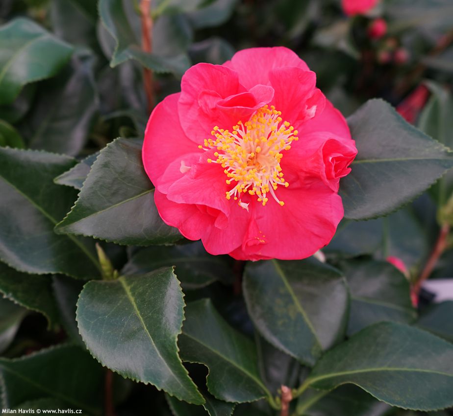 Nativní areál kamélie japonské, Camellia japonica, v Japonsku známé jako tsubaki 椿, zahrnuje Japonsko, Koreu a části východní Číny, kde byla po staletí pěstována nejen pro krásu květů, ale i jako součást duchovního a estetického světa. Její skutečné poznání v Evropě je neoddělitelně spjato s cestami Carla Petera Thunberga (1743–1828), který ji pozoroval v japonských zahradách v době, kdy byla země pro cizince téměř uzavřená. V Japonsku byla kamélie po generace vysazována u chrámů, svatyní a šlechtických sídel, často jako dědičná rostlina, která přežívala několik lidských generací a stala se tichým svědkem rodinné i duchovní kontinuity. Úcta k ní se promítla i do zvyků a symboliky: její zimní kvetení bylo vnímáno jako projev vytrvalosti a klidné síly v období, kdy většina rostlin odpočívá. Zároveň však způsob, jakým květ kamélie opadá celý, nikoli po jednotlivých plátcích, vyvolával v tradiční japonské kultuře určitou zdrženlivost. Tento náhlý a úplný opad byl někdy symbolicky spojován s náhlým koncem a pomíjivostí, a proto se kamélie v některých historických kontextech objevovala méně často například v prostředí samurajské vrstvy. Přesto zůstala hluboce zakořeněná v každodenním životě, poezii i zahradním umění, kde symbolizovala čistotu, zdrženlivost a krásu bez okázalosti. V Evropě se stala od 18. století objektem sběratelské vášně a symbolem luxusu, zejména v teplejších oblastech Anglie, jako je Cornwall a okolí Londýna, kde se kamélie brzy uplatnily ve šlechtických zahradách a sklenících, než se zjistilo, že je možné je pěstovat i venku. Přesto její původní kulturní význam, založený na tichém soužití s člověkem, zůstává čitelný dodnes v každém starém keři, který kvete u chrámové zdi nebo v zapomenuté zahradě.