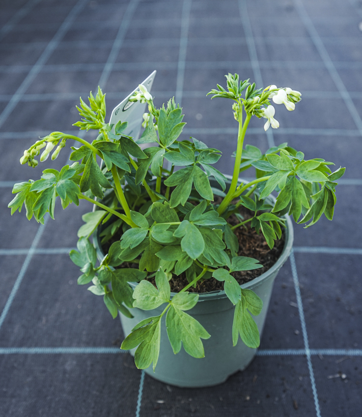 Listy jsou středně dělené, matné, 20-40 cm dlouhé, výrazně dělené a vykrajované jako listy dřevitých pivoněk. Plně vykvetlá srdcovka je tak bohatá, že vypadá spíše jako keř než jako trvalka, přesto pár týdnů po odkvětu listy začínají žloutnout a rostlina se ukládá k odpočinku. Můžete ji celou zastřihnout lehce nad zemí. Její kořeny jsou dužnaté a poměrně mohutné, přesto křehké, ale jakmile zakoření, na stanovišti vydrží mnoho let.