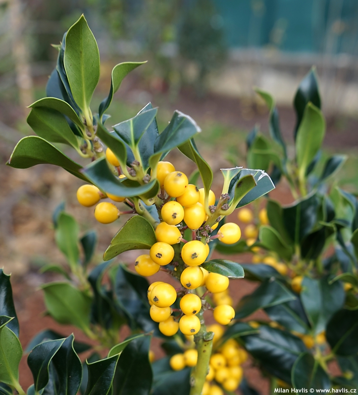Ilex aquifolium 'BACCIFLAVA SPINELESS' cesmína ostrolistá - beztrnná - samičí