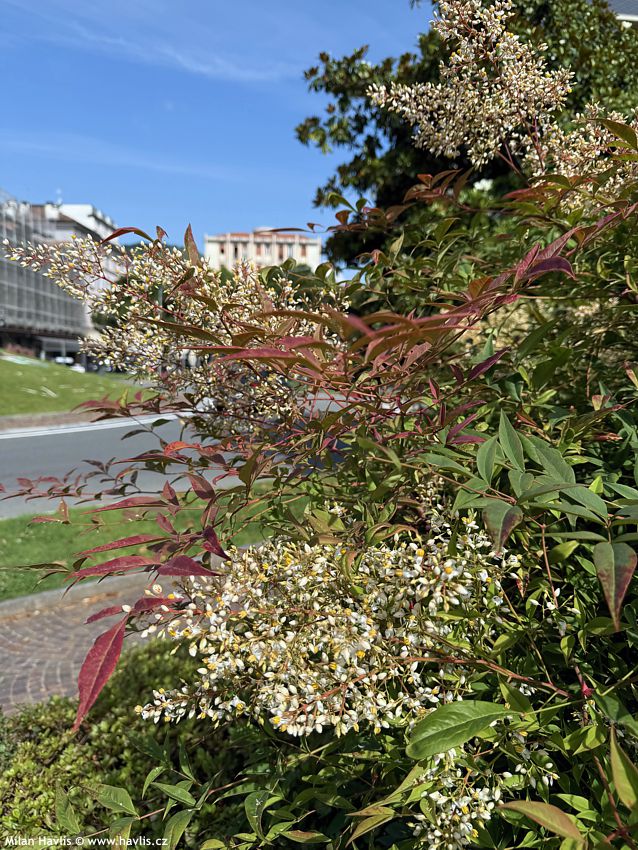 Tvar rostliny je kromě podzimního zbarvení listů většinou hlavním důvodem, proč se pro ni rozhodnete. Nabízí totiž neobvyklou strukturu, která vzdáleně připomíná tvar palmy, tj. kmen a vějířovité listy. Proto se většinou sází do středu kompozice, kdy kolem jsou vysázené nižší stálezelené keře s drobnými listy, nebo se používá jako menší solitéra, kde ji několik desítek centimetrů kolem neruší žádná jiná rostlina. Ať už se vám zalíbí tvar, barva listů, kvetení nebo plody, nandina je určitě rostlina, která si zaslouží více pozornosti v oblastech s průměrnými zimami.